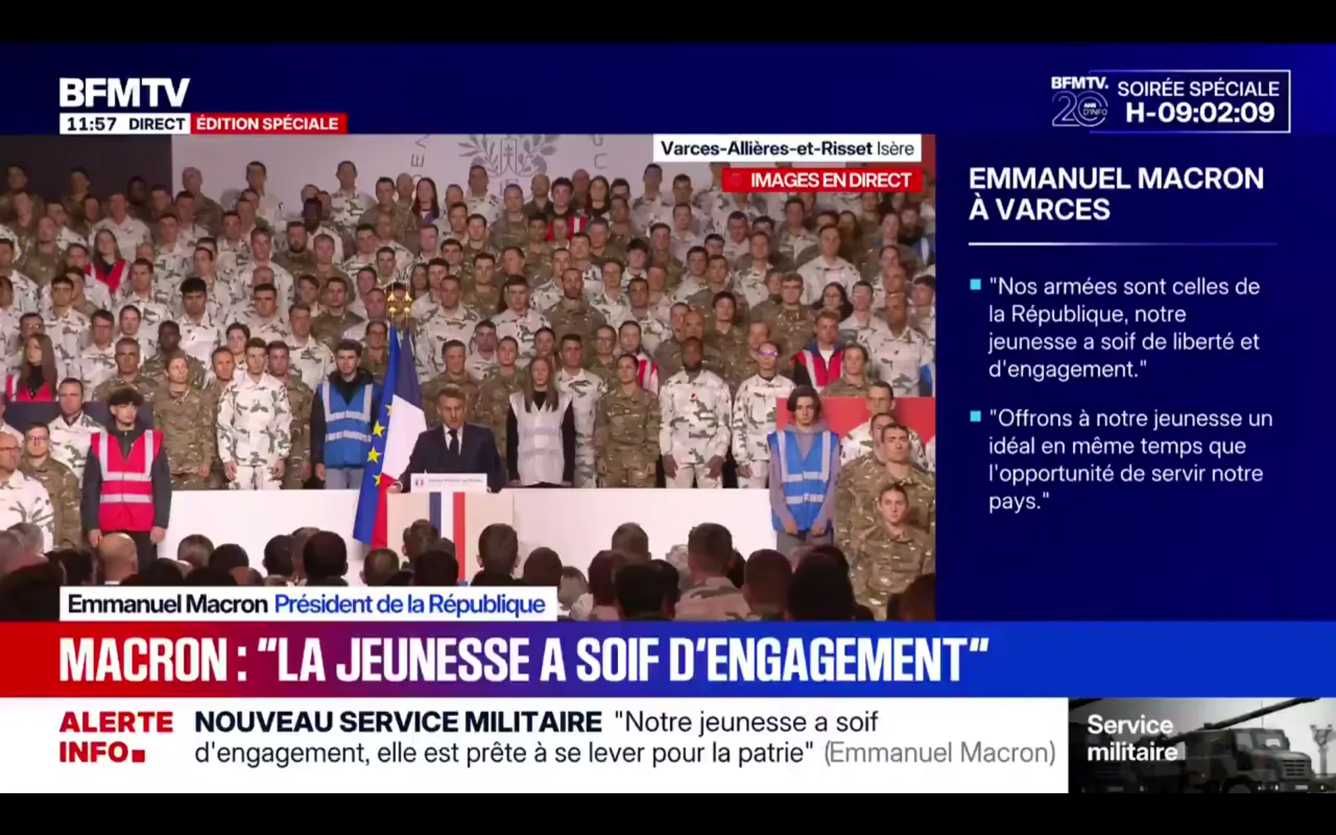 Макрон официально объявил: со следующего лета во Франции стартует добровольная военная служба. Срок – до 10 месяцев, к 2035 году планируют набирать по 50 тыс. человек в год.