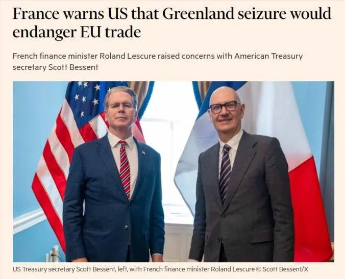 Об этом заявил министр финансов Франции Ролан Лескюр. Он встретился с американским коллегой Скоттом Бессентом еще в понедельник и лично передал позицию Парижа. По его словам, в Европе «глубоко обеспокоены» претензиями Трампа на остров.