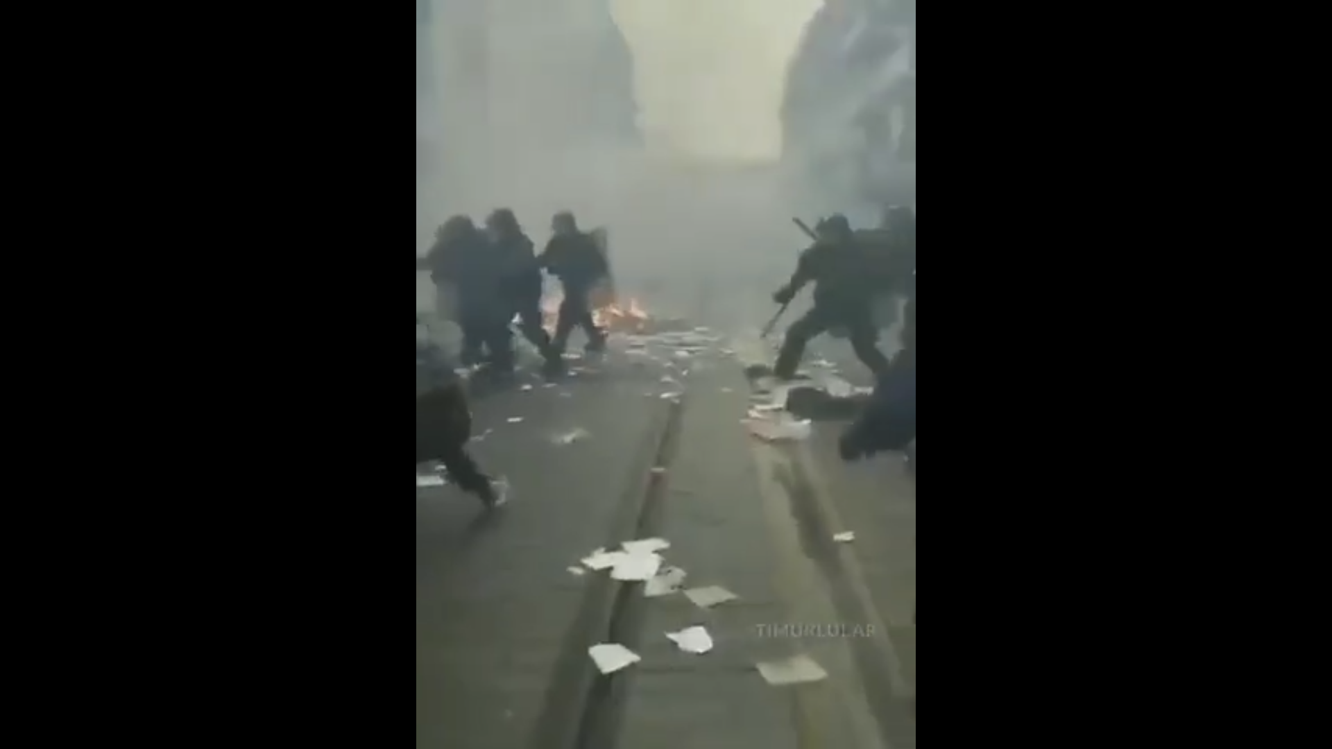 Небольшие группы демонстрантов вступают в потасовки с местными силовиками.