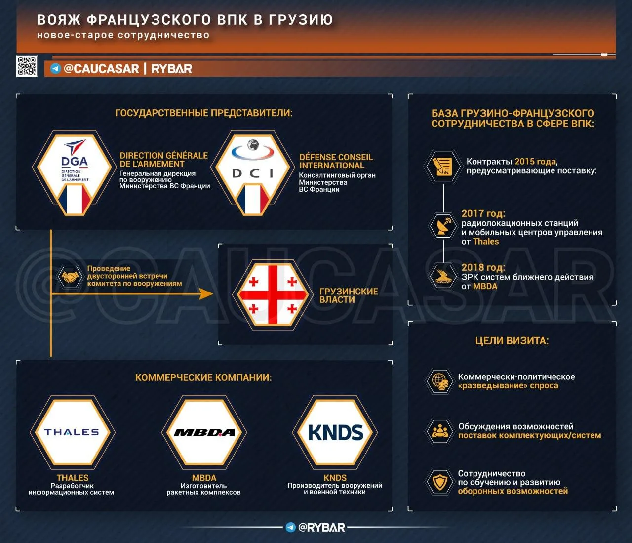 Текущий визит стал логичным продолжение линии, где государственные структуры (DGA, DCI) и частный ВПК прощупывали новые возможности. Которых, к слову, грузинское руководство продолжает ожидать от представителей НАТО.