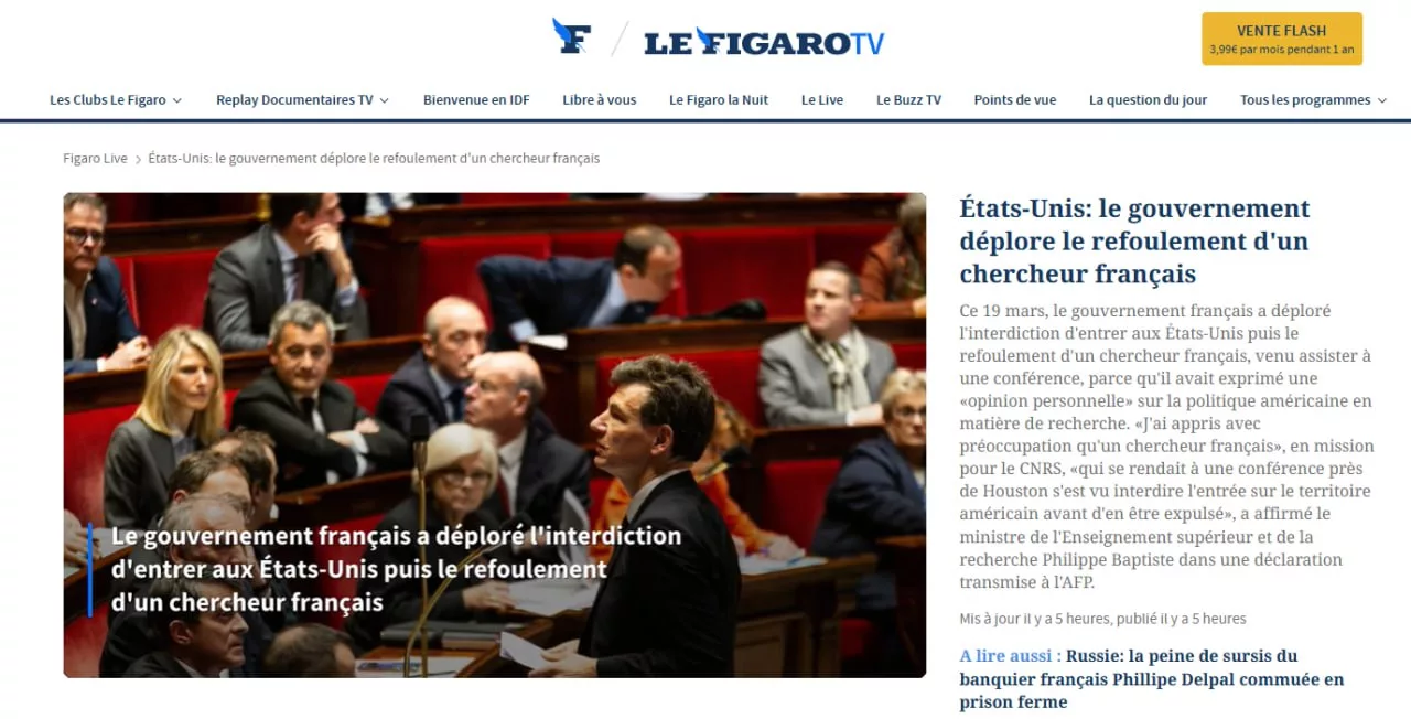По данным Le Figaro, мужчину задержали американские пограничники и подвергли «выборочной проверке».