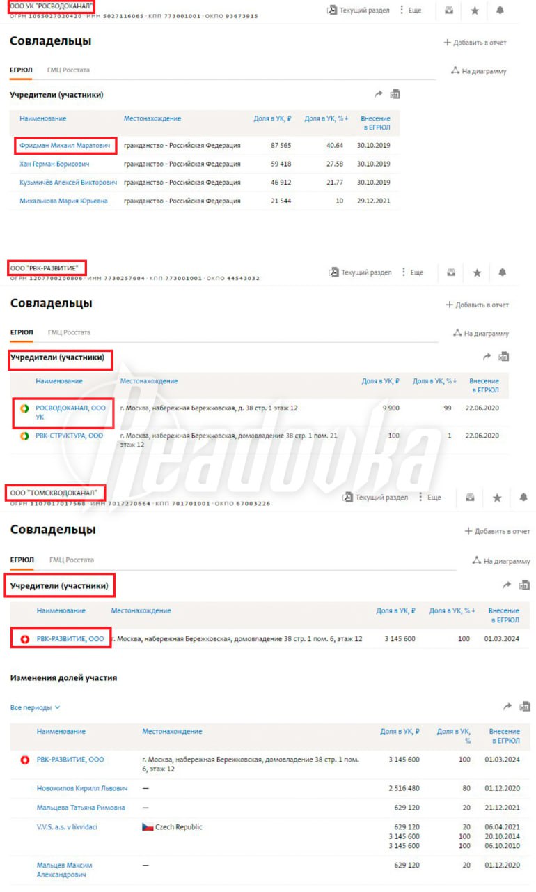 Так, бизнесмен является одним из владельцев «Росводоканала», который, в свою очередь, — собственник ООО «РВК Развитие», а вот уже в ее структуру вошел «Томскводоканал». То есть Фридман, будучи одним из совладельцев «Росводоканала», через две компании снова приложил свои руки к отечественным компаниям. Несмотря на то что на Западе его дела совсем недавно стали идти чуть лучше, чем было до — его даже исключили из списка канадских санкций, — беглый олигарх, не нашедший себя нигде, кроме России, возвращается в родную гавань. По крайней мере финансово.