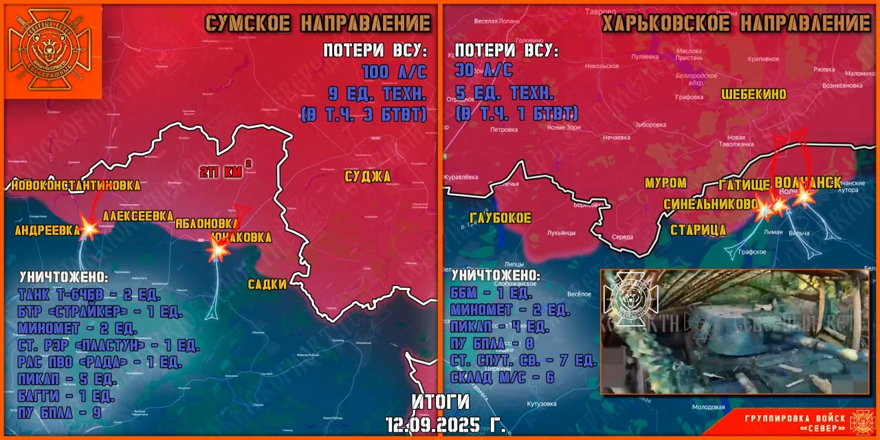 Штурмовые группы Северян с тяжелыми боями продвигаются в лесу западнее Синельниково, на левом берегу реки Волчья и на Хатненском участке. ВСУ контратакуют и продолжают наносить удары по гражданским объектам на территории Белгородской области.