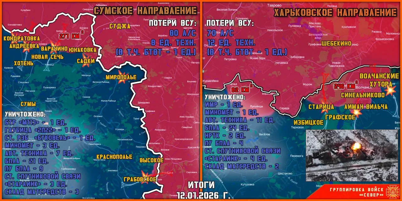 На всем участке фронта в Сумской области продолжаются ожесточенные бои. Северяне продавливают оборону ВСУ при поддержке штурмовой авиации и артиллерии. Противник интенсивно оборудует запасные оборонительные позиции.