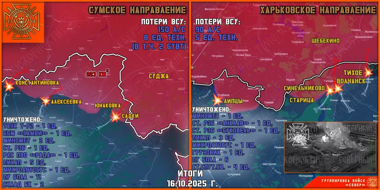 ▪️ВСУ попытались провести контратаку в направлении Алексеевки силами 225 ошп. Выдвижение штурмовой группы противника заблаговременно вскрыто разведкой, комплексным огневым поражением атака сорвана. Враг потерял до 50% личного состава группы, остальные отступили на исходные позиции.