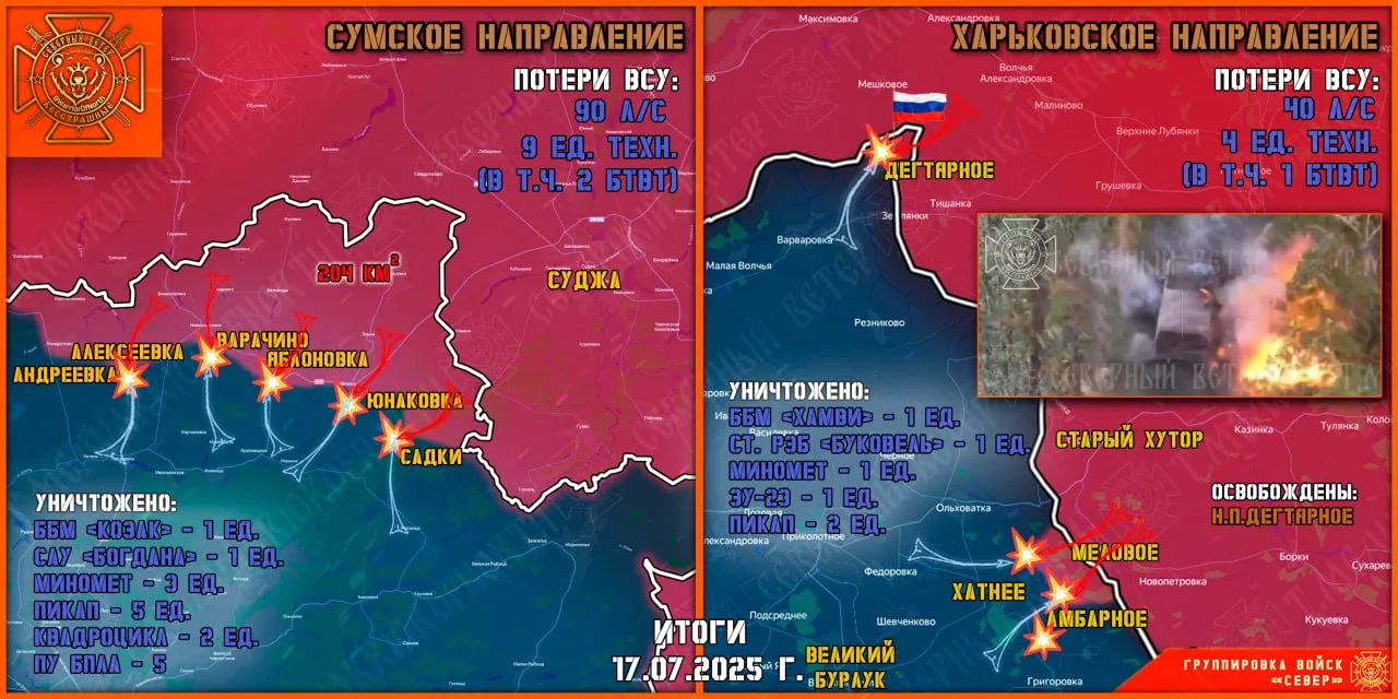 17 июля группировка войск «Север» продолжила создание полосы безопасности в Харьковской и Сумской областях