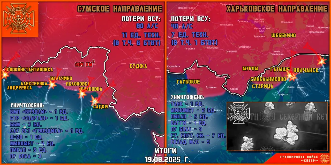 ▪️На Теткинском и Глушковском участках фронта противник активных действий не предпринимал, но продолжает переброску подкреплений. По скоплениям живой силы и техники работают авиация ВКС РФ и артиллерия группировки «Север».