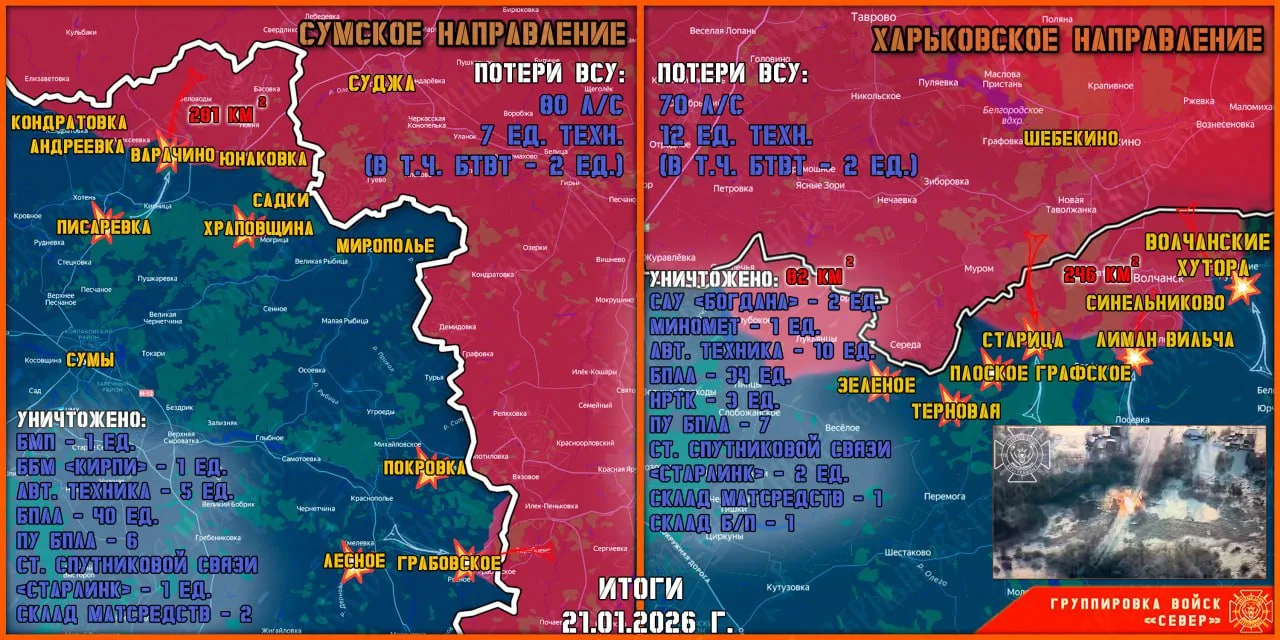 Штурмовые группы Северян продвигаются практически на всех участках фронта в Харьковской области. Авиация ВКС РФ и расчеты ТОС-1А наращивают интенсивность ударов по позициям ВСУ. Противник пытается нарастить количество личного состава на позициях и активно применяет FPV-дроны.