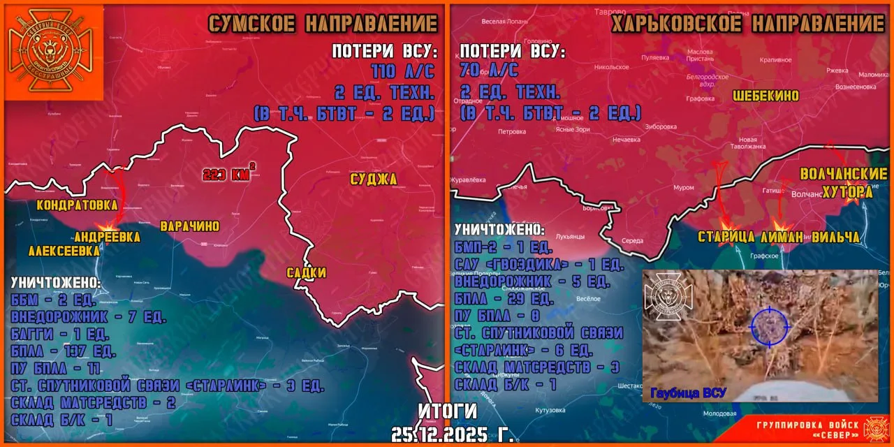 За сутки потери противника составили свыше 180 человек (из них более 110 в Сумской области и свыше 70 в Харьковской). Также вскрыто и уничтожено:
