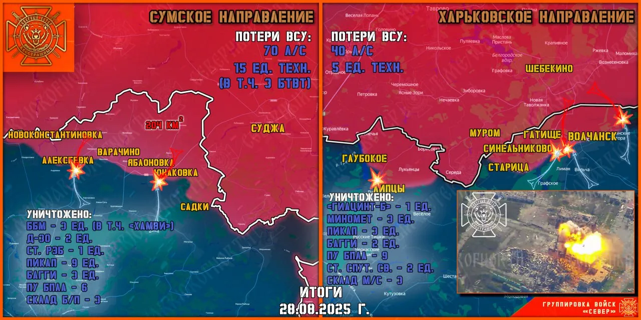 За сутки потери противника составили свыше 200 человек (из них более 110 в Сумской области и свыше 90 в Харьковской). Также вскрыто и уничтожено: