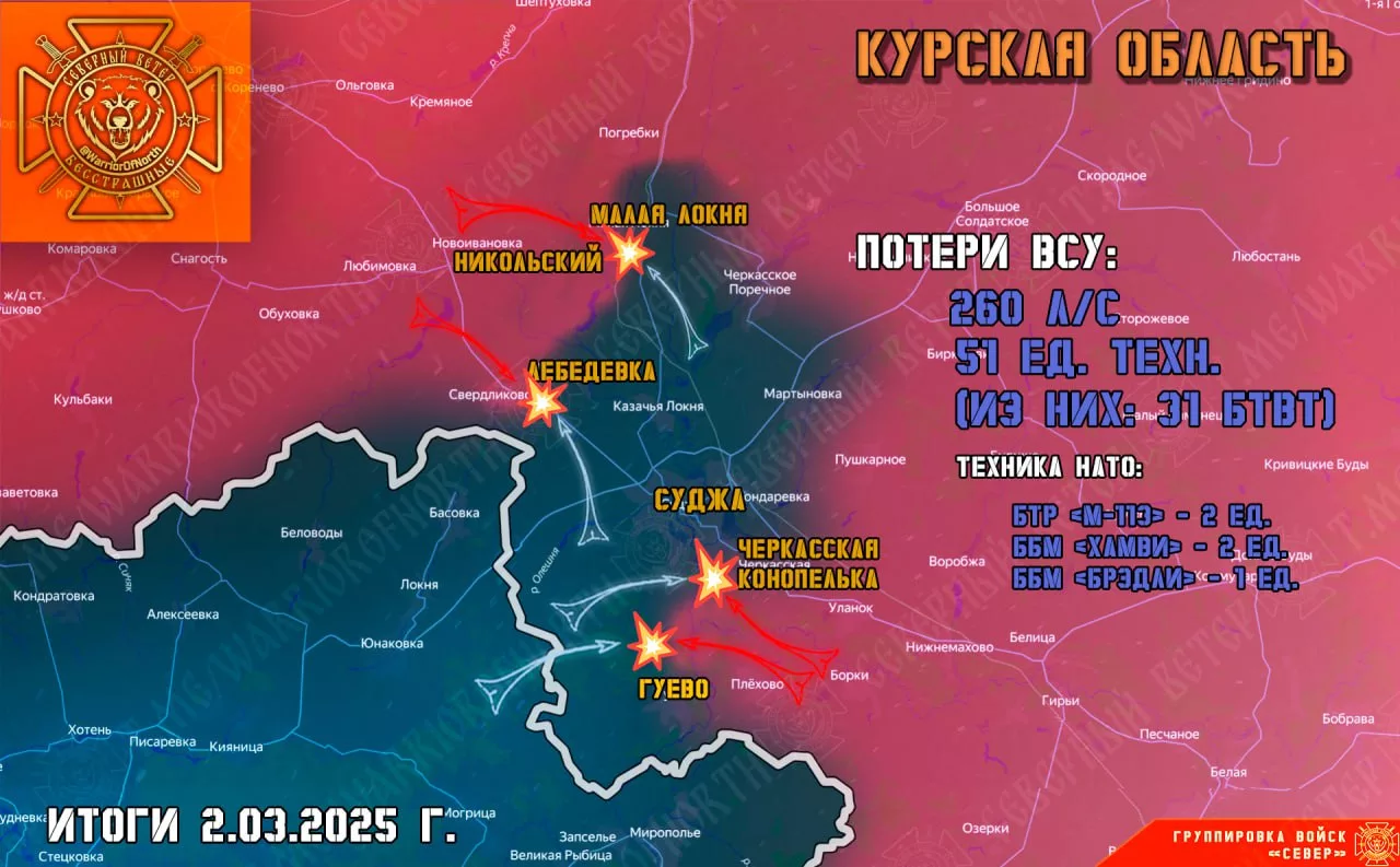 2 марта группировка войск «Север» продолжила выполнять задачи по освобождению Курской области