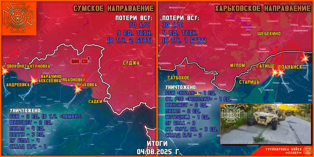 ▪️Регулярные удары по скоплениям сил ВСУ, а также грамотные действия Северян сточили наступательный потенциал врага, существенно сократив численный состав штурмовых групп. Родственники военнослужащих 95 одшбр и других бригад в соцсетях сообщают, что по прибытию на Сумское направление их сразу бросают на убой.