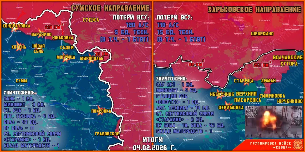 За сутки потери противника составили свыше 230 человек (из них более 120 в Сумской области и свыше 110 в Харьковской). Также вскрыто и уничтожено: