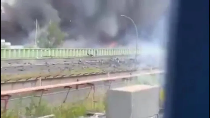В Гамбурге не могут потушить пожар на складе, где хранились поставки для Украины. Причиной ЧП стал припаркованный на складе автомобиль.