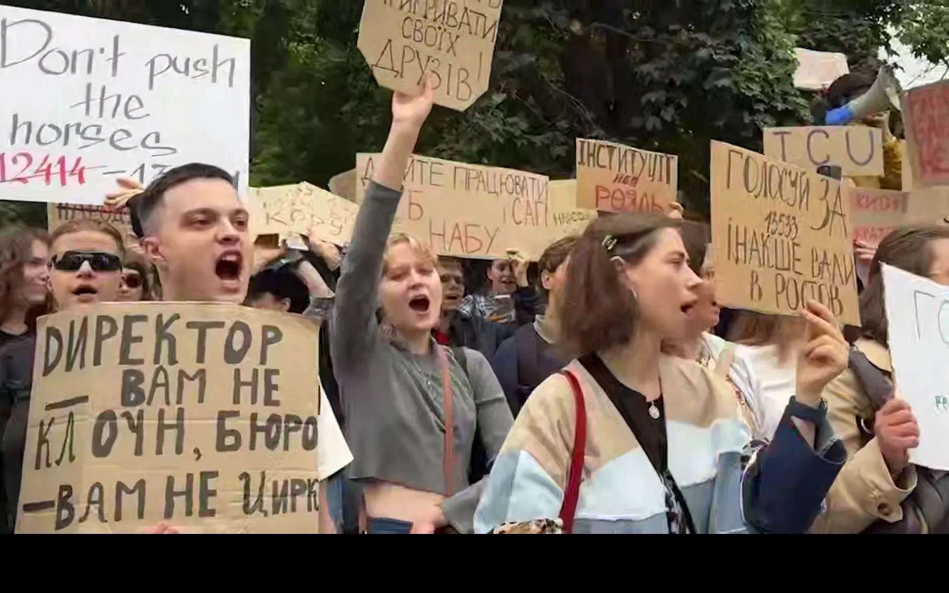 Протестующие с плакатами требуют от депутатов на сегодняшнем заседании вернуть полномочия этим ведомствам, скандируя: «Руки прочь от НАБУ и САП», «Коррупция убивает» и «На работу депутатов!», «Украина это демократия».