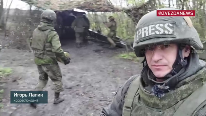 На снятых с беспилотника кадрах видно, как после меткого попадания оставшиеся в живых в панике бегут из здания и прячутся в другом укрытии. Но через некоторое время и туда прилетает снаряд.