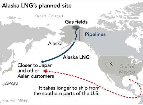 В то время как предложение о строительстве Аляскинского СПГ-комплекса сталкивается с трудностями, связанными с затратами и логистикой, Япония, Южная Корея, Тайвань и другие страны поддерживают идею более широкого увеличения импорта газа из США
