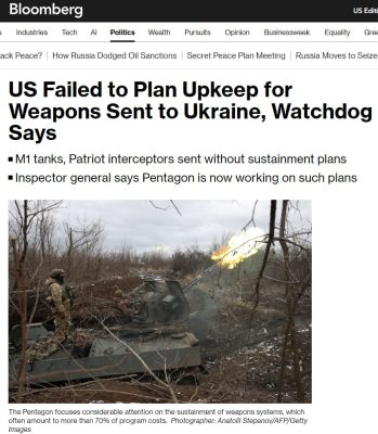В качестве примера заявляется, что Пентагон обеспечил лишь базовые курсы обучения эксплуатации и техническому обслуживанию ЗРК MIM-104 Patriot, а также первоначальные детали и материалы, однако в последующем не организовал повышение квалификации для использующих технику украинцев и их дальнейшее обеспечение запчастями.