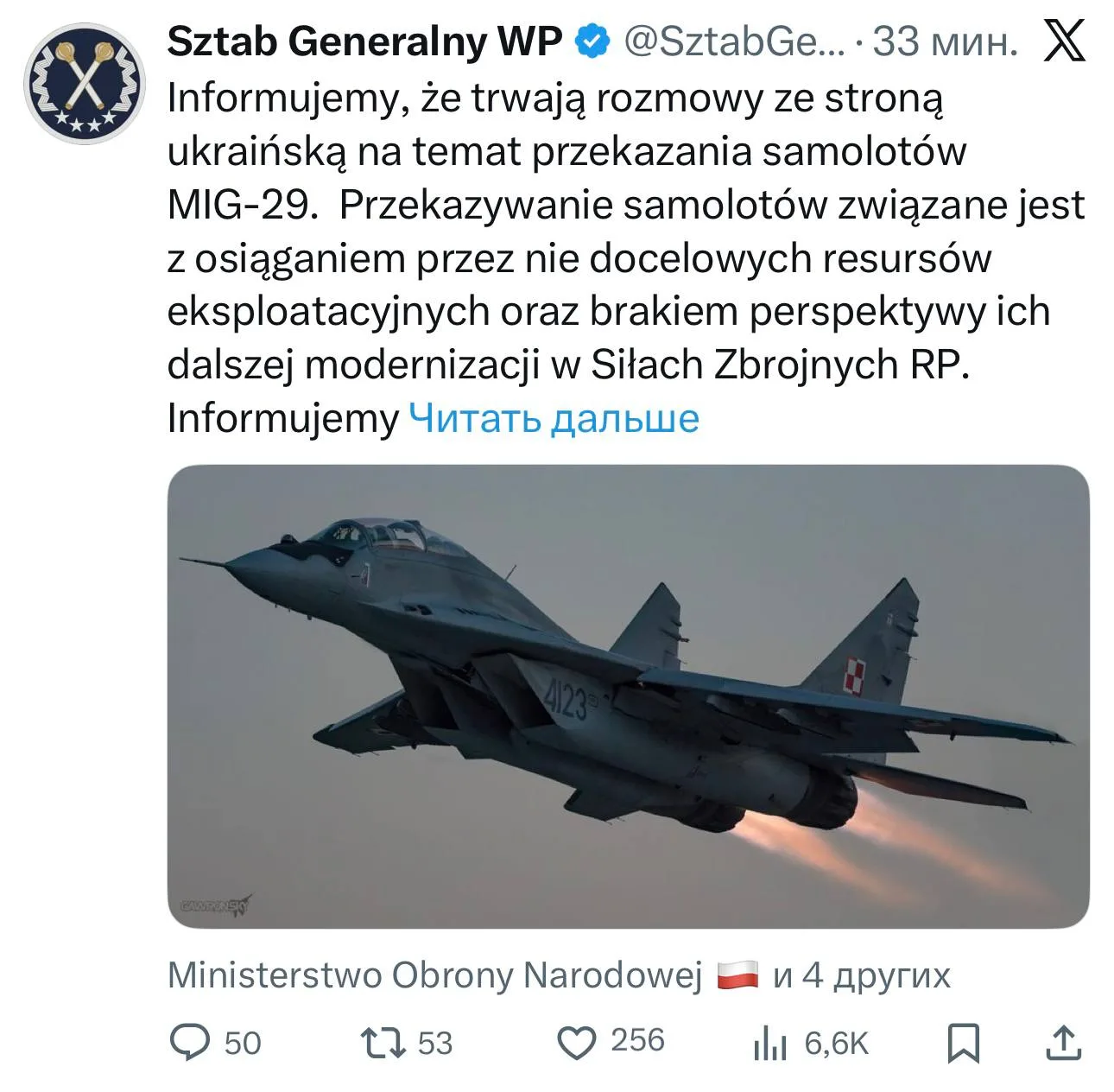 Помимо самолётов страны ведут переговоры о поставке Польше отдельных беспилотных и ракетных технологий.