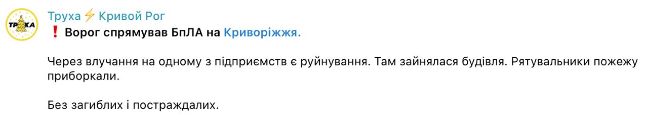 Об этом заявил глава областной администрации Сергей Лысак. Есть разрушения, здание предприятия загорелось. Какой конкретно объект был поражен – пока неизвестно.