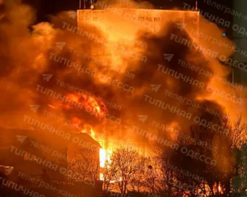 Местные каналы сообщают, что город частично обесточен. На поражённых объектах продолжается мощный пожар.