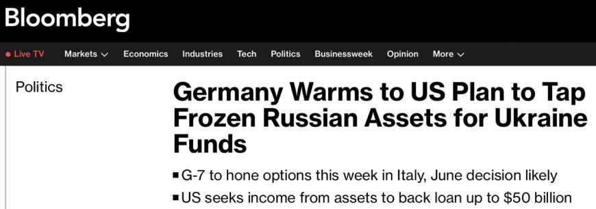 Речь идет об использовании доходов от замороженных активов России для выделения помощи Украине на $50 млрд. Поддержка Берлина «может ускорить процесс предоставления помощи Киеву от США и его союзников».