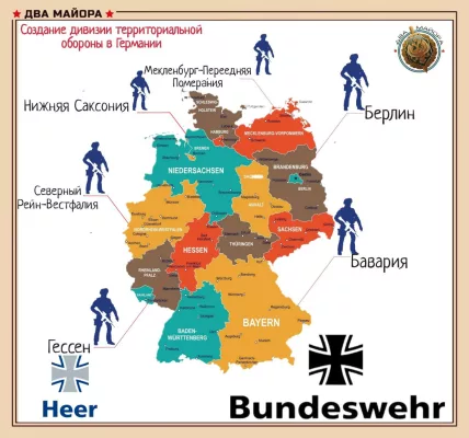 Бундесвер создаст дивизию территориальной обороны. В её составе будет сформировано шесть полков по 1 тыс.человек (сейчас 4 по 400-800 чел.) с дислокацией в Баварии, Берлине, Гессене, Нижней Саксонии, Мекленбурге — Передней Померании и Северном Рейне — Вестфалии. Основу составят резервисты, которые будут действовать под командованием военнослужащих.