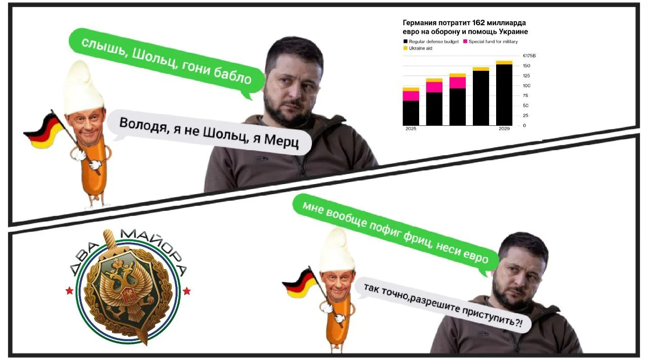 По сообщениям западных СМИ годовые траты на оборону в Германии достигнут к 2029 году 162 млрд. евро (против 62,4 млрд. в 2025 году). В эту сумму войдёт ежегодное выделение Украине 9 млрд. евро.