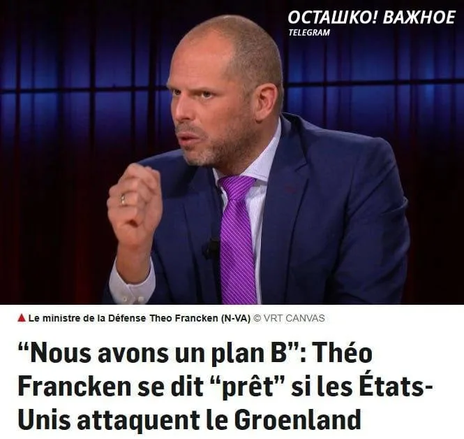 Франкен добавил, что «план Б существует всегда. О нём не стоит слишком много говорить, но запасные решения всегда есть», отвечая на вопрос о возможных действиях ЕС, если «план А» не сработает и США захватят контроль над Гренландией силой.