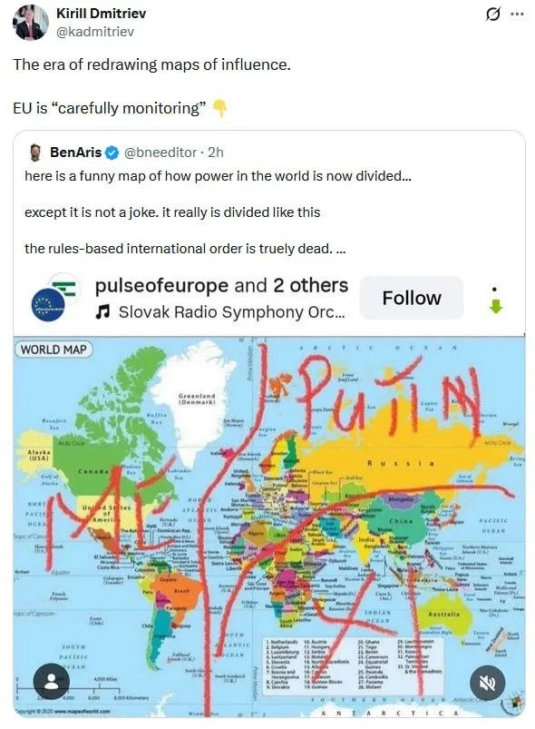 Дмитриев назвал это «эпохой перерисовки карт влияния». Журналист Арис добавил, что карта отражает реальность: