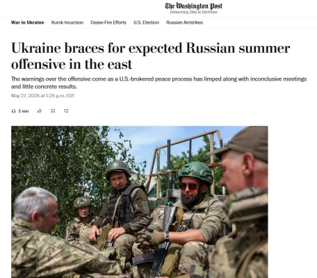 Россия начала летнее наступление на Донбасс. Главная цель — города Покровск и Константиновка, куда ВС России продвигаются с трёх направлений, — пишет New York Post.