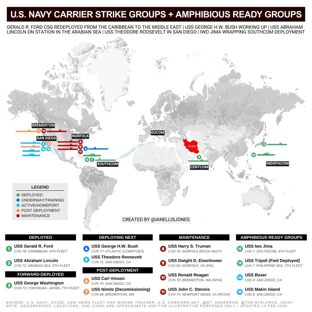 «Джеральд Форд» уже седьмой месяц находится в режиме боевого развёртывания. В июне прошлого года авианосец покинул порт приписки в Норфолке и направился в Средиземное море. В октябре Трамп отправил его в Карибский бассейн для участия в агрессии против Венесуэлы и борьбы с наркотрафиком.