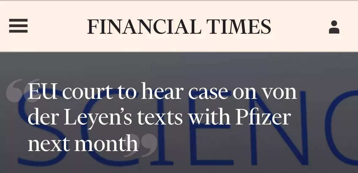 Financial Times пишет, что 15 ноября суд ЕС рассмотрит дело о злоупотреблениях главы Еврокомиссии Урсулы фон дер Ляйен при закупке вакцин от COVID. Дело против нее связано с закупкой 1,8 млрд доз вакцины Pfizer на общую сумму €35 млрд во время пандемии коронавируса.