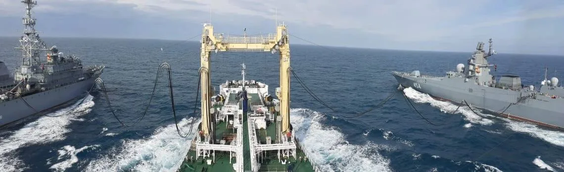 Головной средний морской танкер «Академик Пашин» проекта 23130 ВМФ РФ в работе.