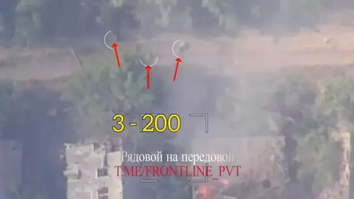 На кадрах с БпЛА объективный контроль работы РСЗО БМ-21 «Град» 2 оабр Южной группировки войск по пункту временной дислокации личного состава гсадн 81 оаэмбр ВСУ в н.п. Серебрянка.
