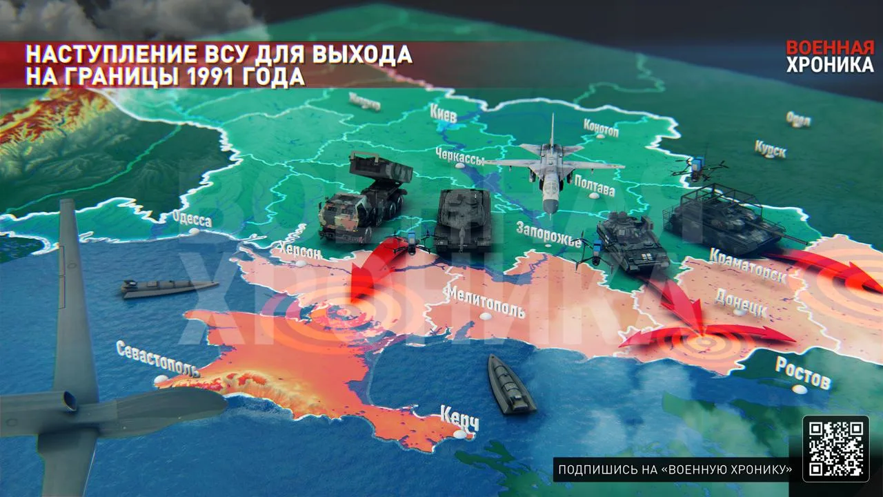 Если стратегическая цель по восстановлению границ 1991 года останется неизменной для Украины, возможность прорыва на 150 км на восток в текущих условиях представляется маловероятной без кардинального изменения баланса сил и получения подавляющего военного преимущества, в первую очередь, в воздухе, технике и людях.