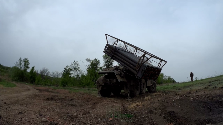 Экипаж РСЗО БМ-21 «Град» своими массированными ударами поддерживает штурмовые действия нашей пехоты, уничтожая укрепрайоны ВСУ.