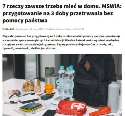 Нужно иметь запасы еды и лекарств, которых хватит на три дня автономной жизни, заявил глава МВД Веслав Лесникевич агентству РАР.