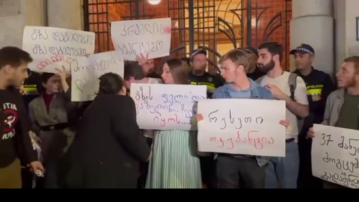 Это же не грузины, это те, кто держит плакат на грузинском языке.