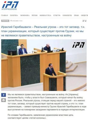 ❗️Премьер-министр Ираклий Гарибашвили считает, что Грузии угрожает «план украинизации», который заключается в открытии «второго фронта» против России.