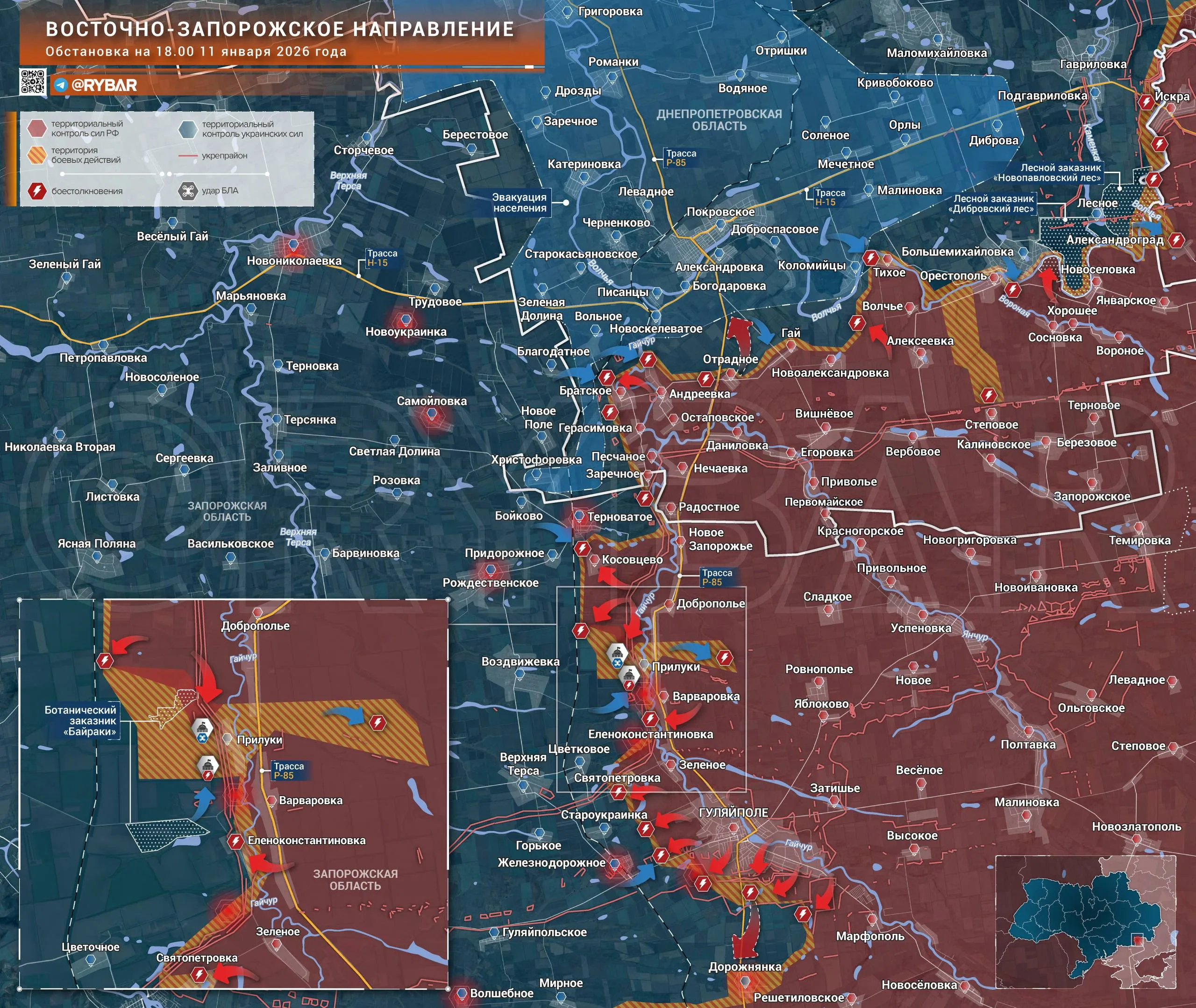 Согласно кадрам объективного контроля, части ГВ «Восток» развивают атаки со стороны Доброполья. Недавно им удалось занять как минимум часть северного массива ботанического заказника «Байраки», а также закрепиться в расположенном рядом опорном пункте.