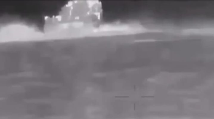 Ранее сообщалось о трех атаках украинских морских дронов на этот корабль.