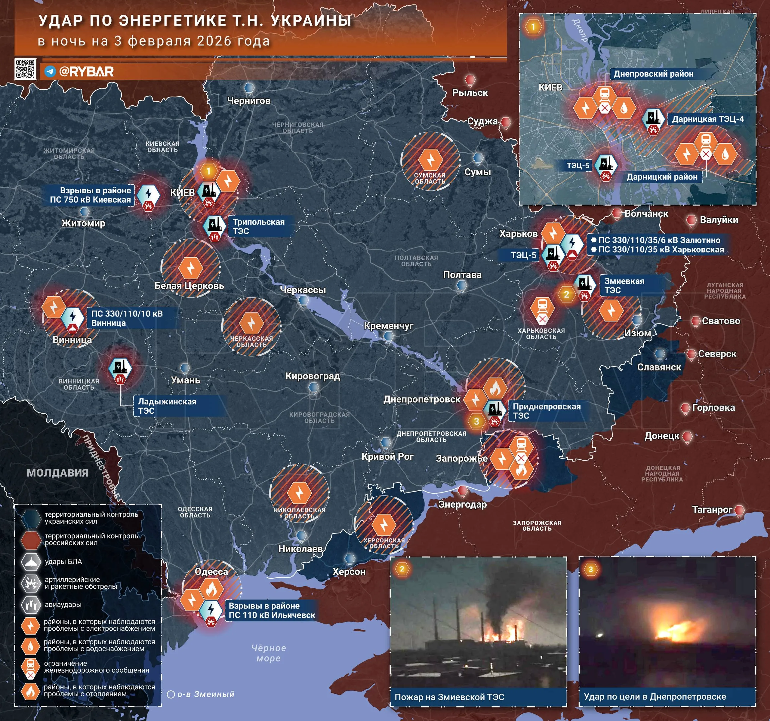Не успело кончиться перемирие, как в Киеве снова пропал свет. Налёт 2 февраля стал пробой пера перед сегодняшним массовым ударом по энергоузлам и объектам генерации сразу в нескольких регионах противника.