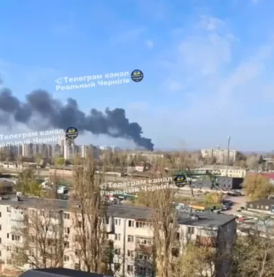 На видео поражённая вчера ударом Герани нефтебаза в Чернигове.