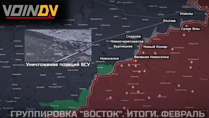 - Подразделения группировки «Восток» за февраль 2025 года в ходе планомерного вклинения в глубину обороны противника взяли под контроль более 100 кв км территории.