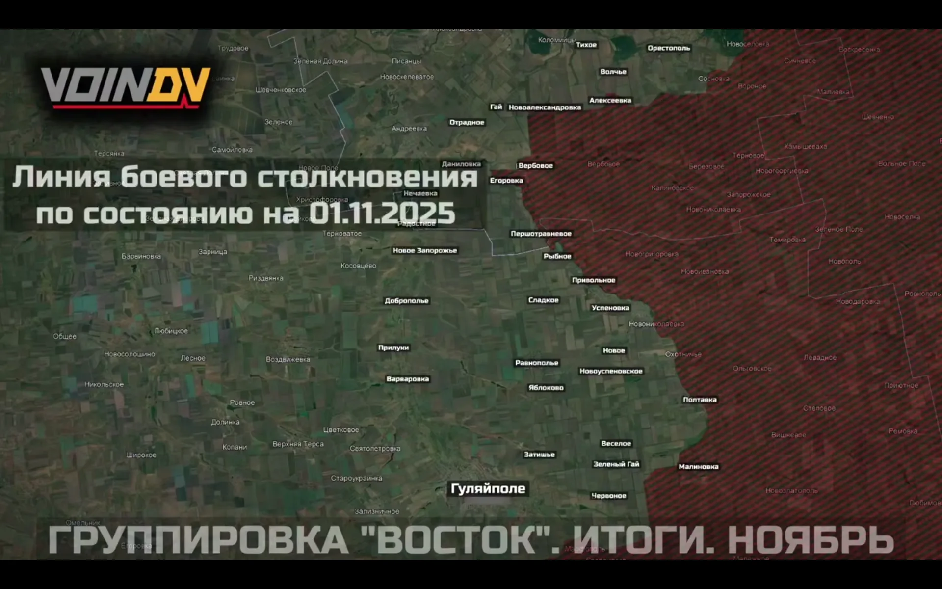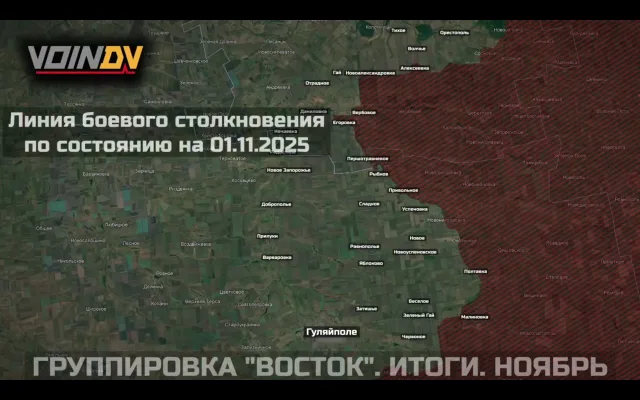 В результате продолжающегося наступления группировки войск «Восток» в Запорожской и Днепропетровской области в ноябре под контроль Вооружённых Сил России перешло более 350 квадратных километров территории, включая 18 населенных пунктов.