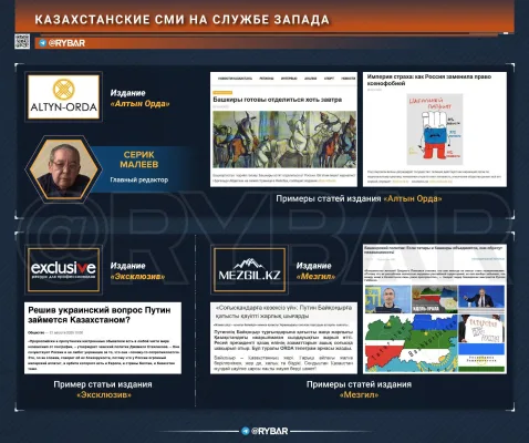 - И таких СМИ Казахстана на самом деле немало. Многие ресурсы, как, например, «Мезгил», в котором пропагандируют сепаратизм в Башкортостане и публикуют статейки «нашего старого знакомого Габбасова», или Exclusive, в котором продвигают тезисы о том, что после т.н.Украины в Москве решат пойти на Казахстан.