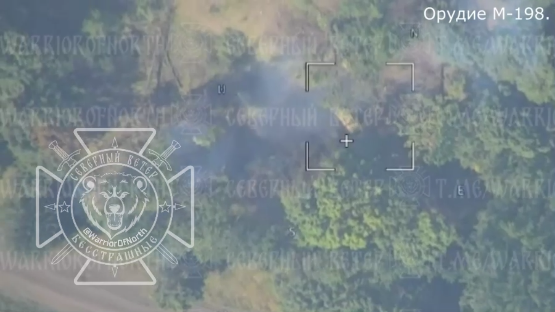 В н.п. Волоховское расчетом барражирующего боеприпаса «Ланцет» поражена замаскированная позиция расчета американской гаубицы М198 ВСУ.