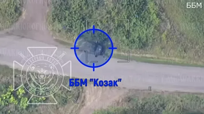 Бронемашина уничтожена на подступах к Судже расчетом барражирующего боеприпаса «Ланцет» Группировки «Север». Потери противника 2-200, 2-300.