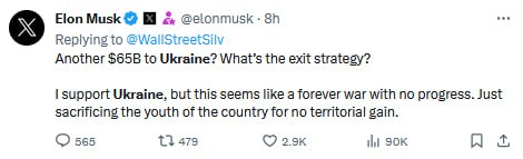Уважаемый Илон Маск, стратегия выхода такова — заканчиваются деньги, страна объявляет дефолт, экономика рушится, начинается гражданская война.